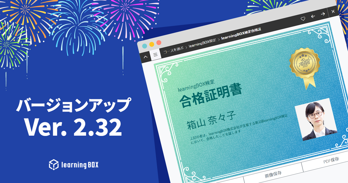 さて、本日、learningBOXがVer.2.32へバージョンアップいたしました。