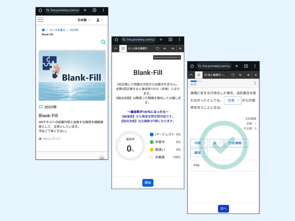 We also offer services such as “Week Check,” which delivers and analyzes 100 new questions weekly, and “Blank-Fill®,” a fill-in-the-blank drill exercise launched in April 2025, both of which have received positive reviews. These tools are intentionally designed with gamification and microlearning in mind to increase engagement and effectiveness.