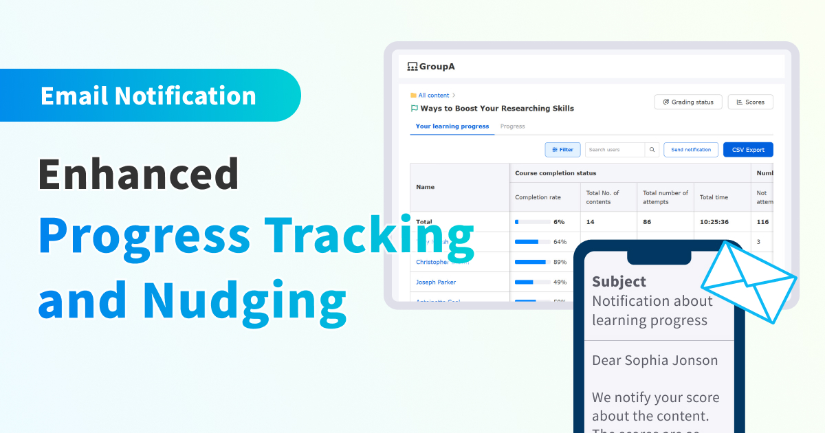 The Progress record has been enhanced to send notifications to encourage students who have not completed the content.