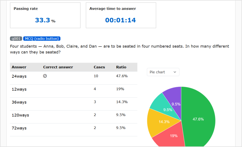 Answers can be viewed graphically and numerically for each question.