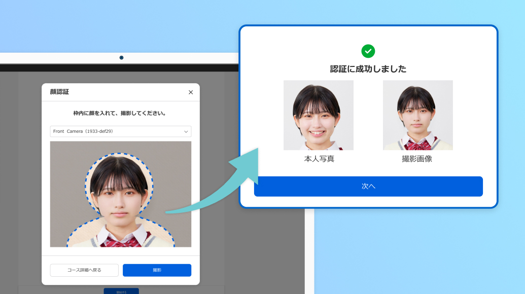 申し込み時に登録した本人写真と、試験直前に撮影した写真をAIが認証します。